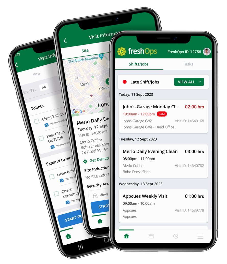 Enable your team to access and view their time and attendance records, allowing them to keep track of their working hours and the jobs they’ve completed. The freshOps mobile app for cleaners ensures accurate and reliable timekeeping.